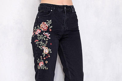 Jeansen var egentligen det första plagget där dessa blombrodyrer började dyka upp och detta satte igång den megatrend som råder just nu. Självklart är de blombroderade jeansen fortfarande supertrendiga även om samma typ av brodyr också går att hitta på väldigt många andra plagg för tillfället. För att få två trender i ett plagg så ska du allra helst köra på ett par i den trendiga modellen “Mom Jeans”, som jeansen på bilderna.
